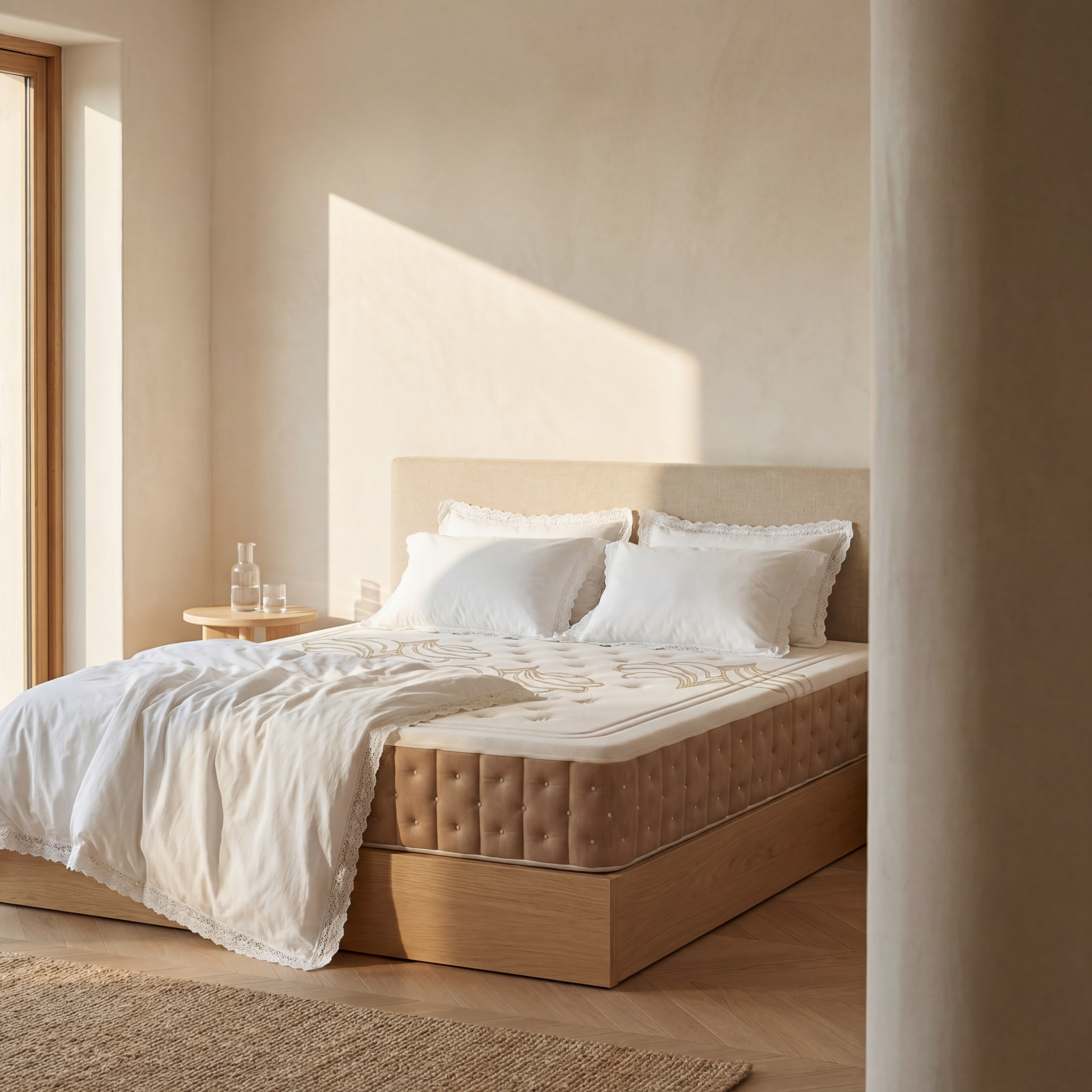 Descansa sobre la pureza de la naturaleza. Nuestro colchón orgánico combina látex natural con visco vegetal elaborada a partir de soja, creando una superficie de descanso saludable, completamente libre de químicos tóxicos. Ergonómico por diseño, hipoalergénico por naturaleza: el colchón naturalque tu piel y tu bienestar han estado esperando.