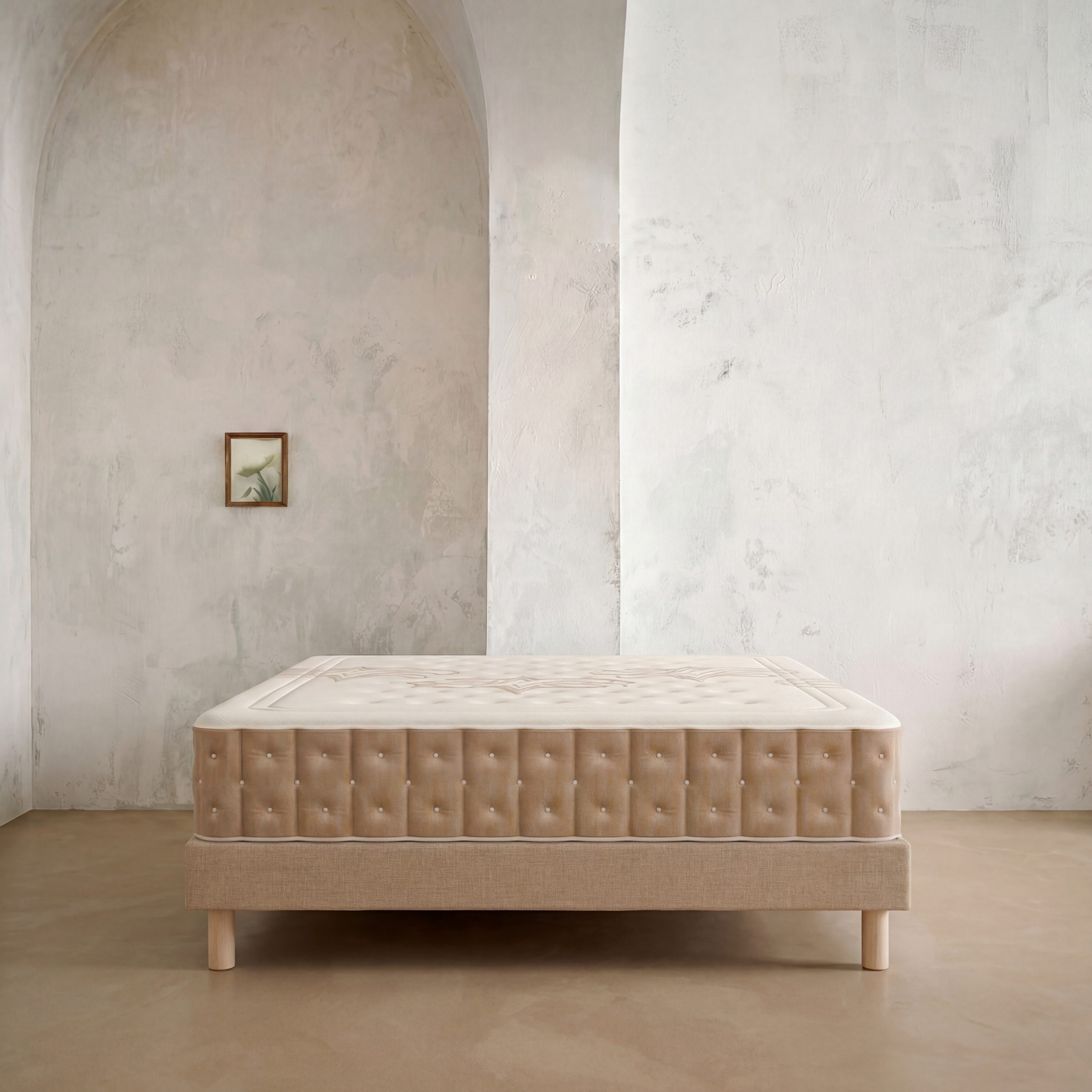 Cada capa se ensambla cuidadosamente sin colas químicas ni adhesivos sintéticos, manteniendo la pureza natural del conjunto para un colchón saludable y sin químicos.