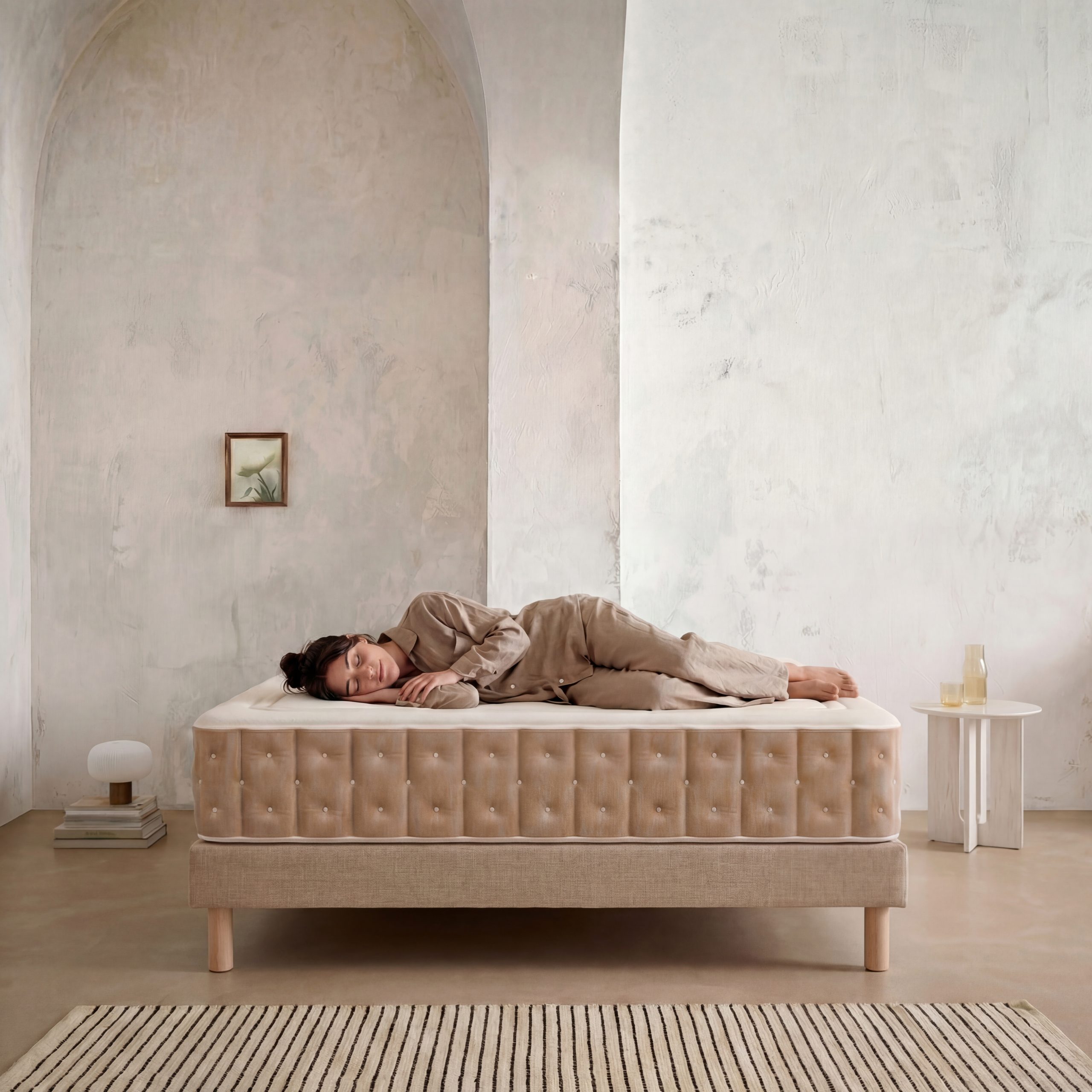 Durante las 8 horas diarias que pasas durmiendo, tu piel está en contacto directo con el colchón. Los materiales sintéticos pueden liberar compuestos orgánicos volátiles (COV) que afectan tu salud respiratoria y cutánea a largo plazo.